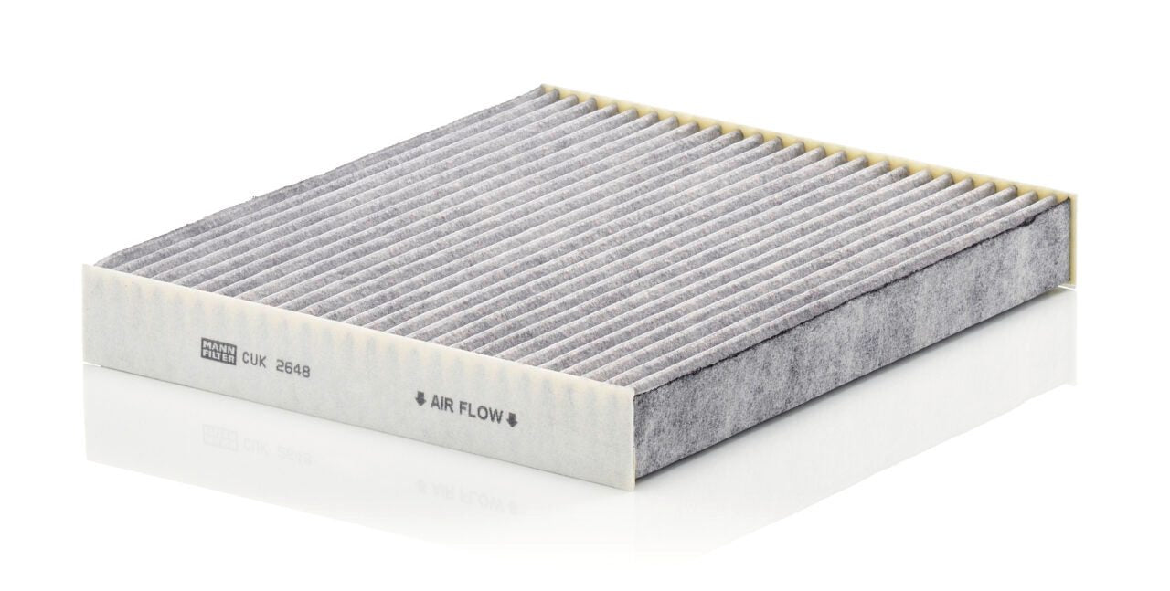 High-quality MANN-FILTER cabin filters with active carbon - nearly 100% protection from particles like pollen, diesel soot & tyre abrasion / Additional protection from harmful gases & unpleasant odour. The trated highly-effective activated carbon gives protection against harmful gases such as ozone, nitrogen oxide or sulphur dioxide and eliminates unpleasant odours during the entire service interval.