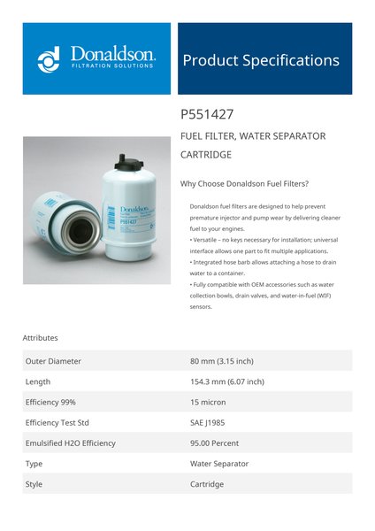 Why Choose Donaldson Fuel Filters?Donaldson fuel filters are designed to help prevent premature injector and pump wear by delivering cleaner fuel to your engines.