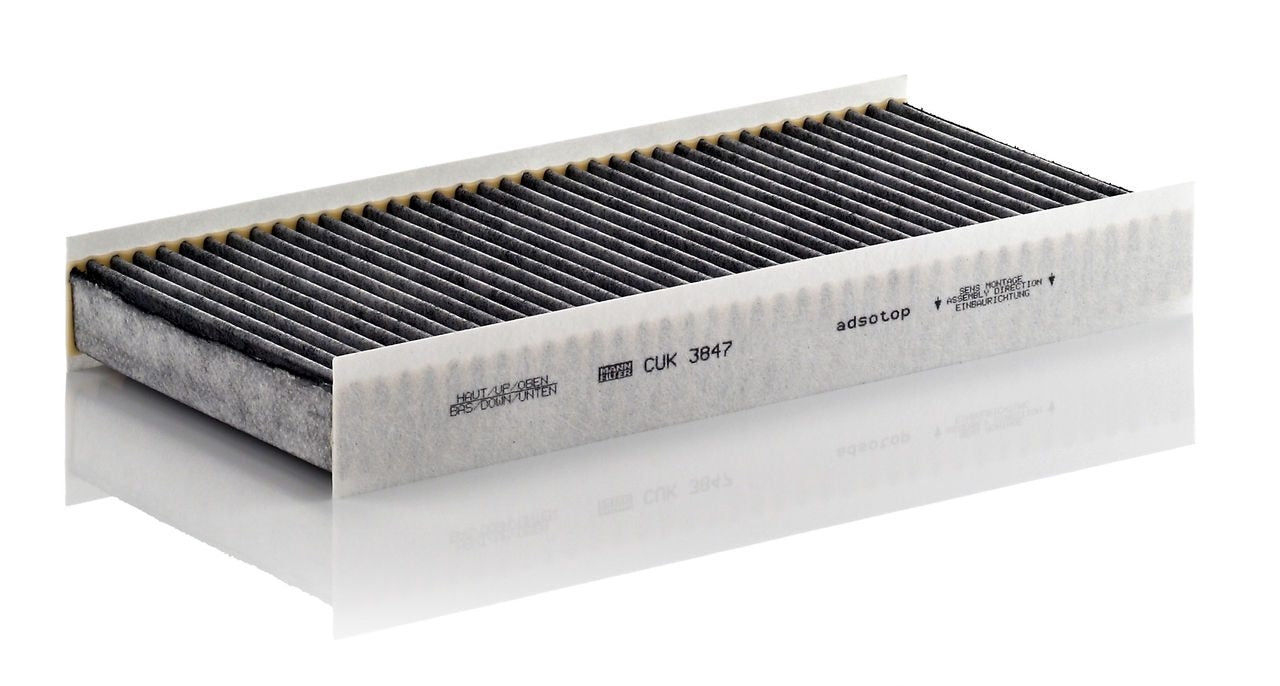 High-quality MANN-FILTER cabin filters with active carbon - nearly 100% protection from particles like pollen, diesel soot & tyre abrasion / Additional protection from harmful gases & unpleasant odour. The trated highly-effective activated carbon gives protection against harmful gases such as ozone, nitrogen oxide or sulphur dioxide and eliminates unpleasant odours during the entire service interval.