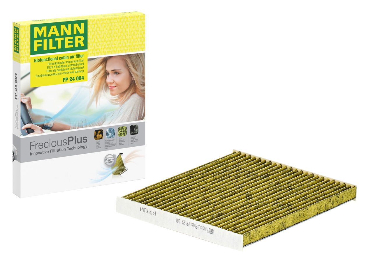 Biofunctional MANN-FILTER FreciousPlus cabin air filters - nearly 100% protection against nitrogen oxides, dust, allergens and mould - harmful gases and unpleasant odours are also eliminated and virus aerosols filtered. The three-layer filter technology absorbs almost 100% of allergens, reduces the growth of molds and bacteria by more than 98% and stops fine dust almost completely.Specification