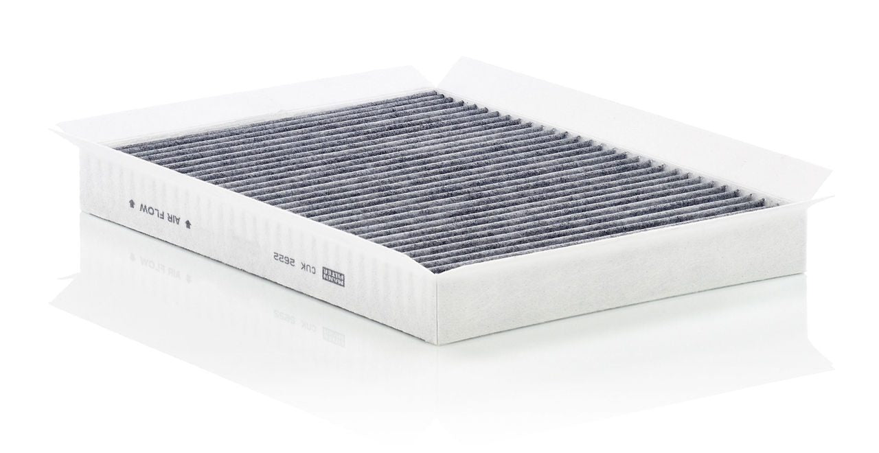 High-quality MANN-FILTER cabin filters with active carbon - nearly 100% protection from particles like pollen, diesel soot & tyre abrasion / Additional protection from harmful gases & unpleasant odour. The trated highly-effective activated carbon gives protection against harmful gases such as ozone, nitrogen oxide or sulphur dioxide and eliminates unpleasant odours during the entire service interval.