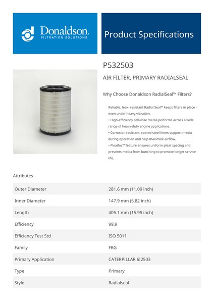 | Style | Air Filter, Primary Radialseal |