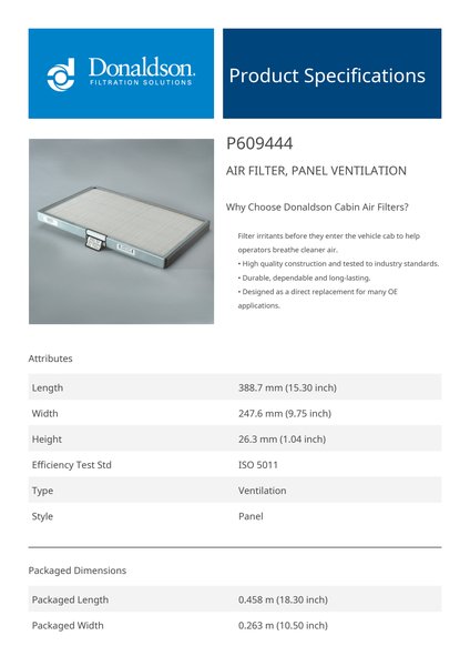 Why Choose Donaldson Cabin Air Filters?Filter irritants before they enter the vehicle cab to help operators breathe cleaner air.