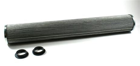 The efficiency of the element is shown using the Micron (µ) and Beta (β) ratings. The micron rating indicates the size of the particle being filtered and the beta rating the efficiency, calculated as 1/β.